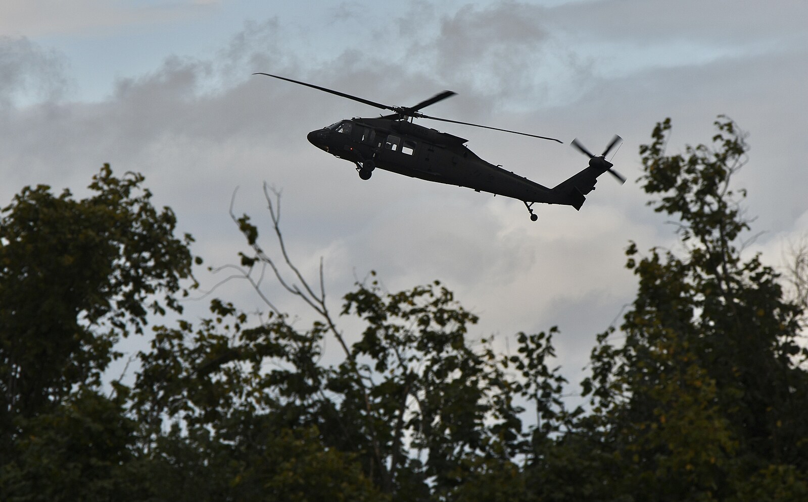 Vrtulník Black Hawk při nácviku vystoupení na Dnech NATO v Ostravě. Stejný typ pomáhal při hašení požáru v Českém Švýcarsku.