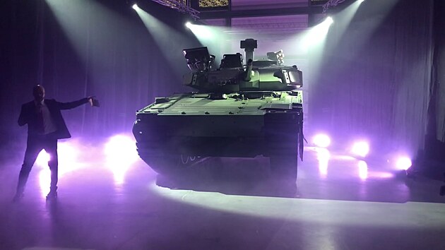 Slavnostní odhalení prvního vyrobeného obrněnce CV90 pro českou armádu ve védsku (28. srpna 2025)