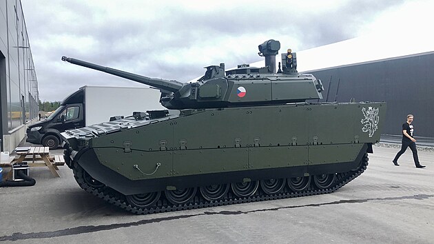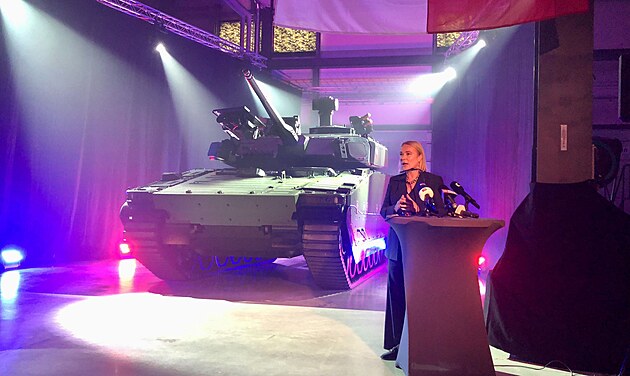 Ve védském výrobním závodě sjede z výrobní linky první pásový obrněnec CV90 pro českou armádu. Slavnostního představení v továrně BAE Systems Hägglunds se dnes ve védském Örnsköldsviku účastní česká ministryně obrany Jana Černochová (ODS) a její védský protějek Jonson. (28. srpna 2025)