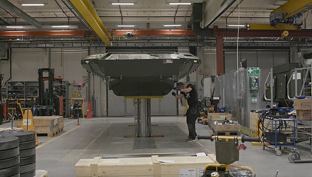 Ve védském výrobním závodě sjel z výrobní linky první pásový obrněnec CV90 pro českou armádu. (28. srpna 2025)
